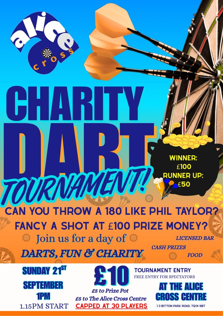 Join us for an exciting day of darts, fun & charity at the Alice Cross Centre.