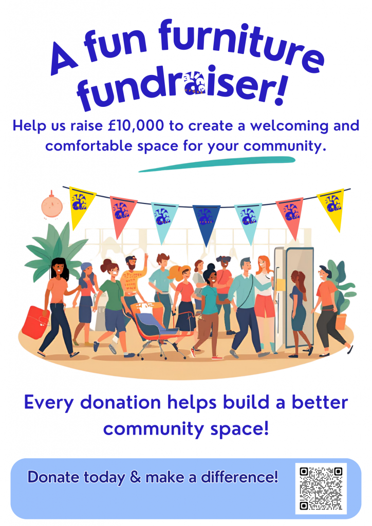 We’re raising £10,000 to replace our old, heavy tables and chairs with bright, modern, lightweight furniture.