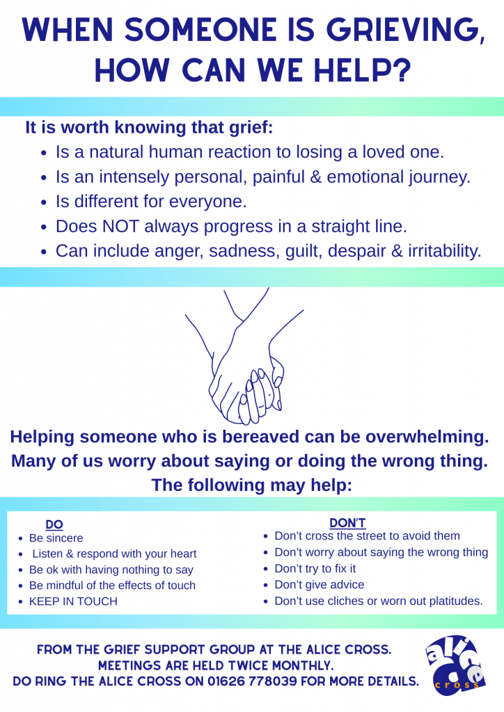 The Alice Cross Bereavement Peer Support Group is a compassionate peer support group for anyone coping with loss or bereavement.