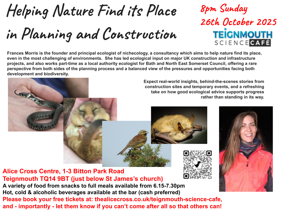 Teignmouth Science Café is a forum for promoting public engagement with Science. As of February 2025 – our 14th anniversary – we will be holding sessions at the Alice Cross Centre on the last Sunday of the month. This will be our 130th science café – you can see a complete list of presenters and the extraordinary range of topics covered here.