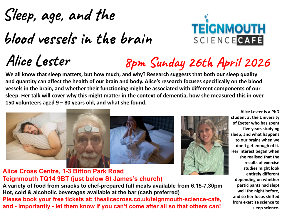 APRIL 26 2026 – TEIGNMOUTH SCIENCE CAFE Presents… Alice Lester: Sleep, Age, & Blood Vessels in the Brain